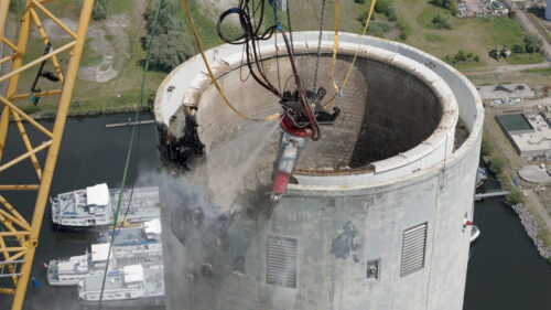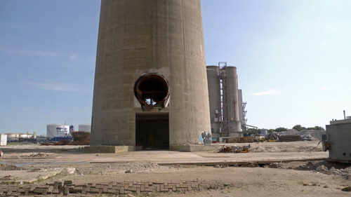 Meer dan 25 jaar was de schoorsteen van de kolencentrale van Amsterdam een landmark. In 2019 besloot de Nederlandse regering in het kader van de energietransitie om de centrale eind van dat jaar stil te leggen. Het zou nog 6 jaar duren voor de 175 meer hoge schoorsteen gesloopt zou worden.